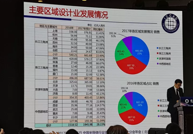 會上,中國半導體行業(yè)協會集成電路設計峰會理事長魏少軍教授發(fā)表了題為「砥礪前行的中國IC設計業(yè)」的演講,就中國IC設計業(yè)的發(fā)展現狀、不同地區(qū)的產業(yè)分布和產業(yè)未來的發(fā)展方向做了深入的探討。