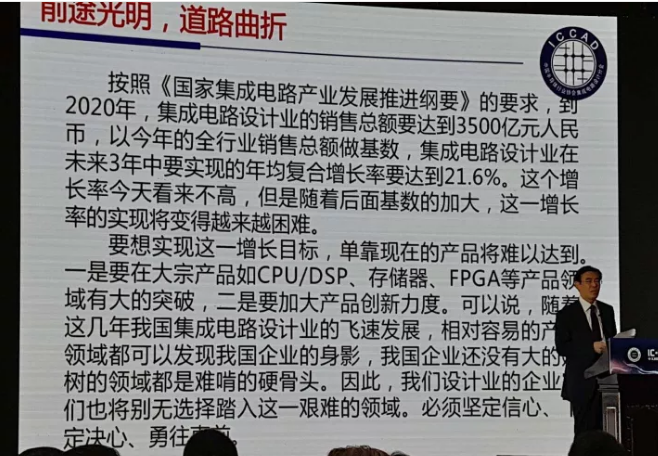 按照《國際集成電路產業(yè)發(fā)展推進綱要》的要求,到2020年,集成電路產業(yè)設計業(yè)的銷售總額要達到3500億元人民幣,要是實現這一目標,前途光明,道路曲折。