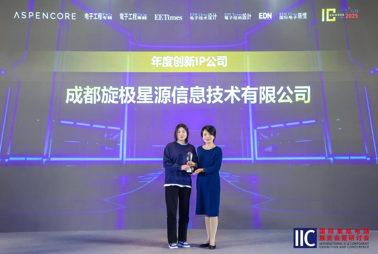 3月27日-28日,2025國際集成電路展覽會(huì)暨研討會(huì)(IIC Shanghai 2025)在上海金茂大廈成功舉行。旋極星源攜多項(xiàng)創(chuàng)新成果亮相展會(huì),并在同期舉辦的 2025 中國 IC 設(shè)計(jì)成就獎(jiǎng)?lì)C獎(jiǎng)典禮上,憑借持續(xù)的技術(shù)創(chuàng)新、優(yōu)秀的市場表現(xiàn)及廣泛的行業(yè)影響力,斬獲 "年度創(chuàng)新 IP 公司" 殊榮。這不僅是對旋極星源技術(shù)實(shí)力的高度認(rèn)可,更是對國產(chǎn)半導(dǎo)體產(chǎn)業(yè)鏈自立自強(qiáng)的有力推動(dòng)。